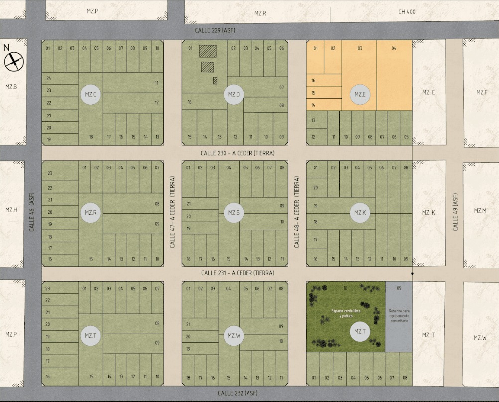 Barrio residencial abierto con urbanización municipal aprobada. Lotes desde 336 m² en un entorno natural, tranquilo y con excelente conectividad.
